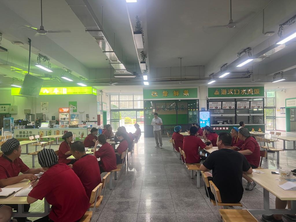 食品安全培训先行。学校组织餐厅全体工作人员参加了专业的食品安全培训。培训中,讲解了食品卫生法规、操作规范以及食物中毒预防等重要知识。通过案例分析让工作人员深刻认识到食品安全的重要性,为新学期的餐饮服务筑牢思想防线。