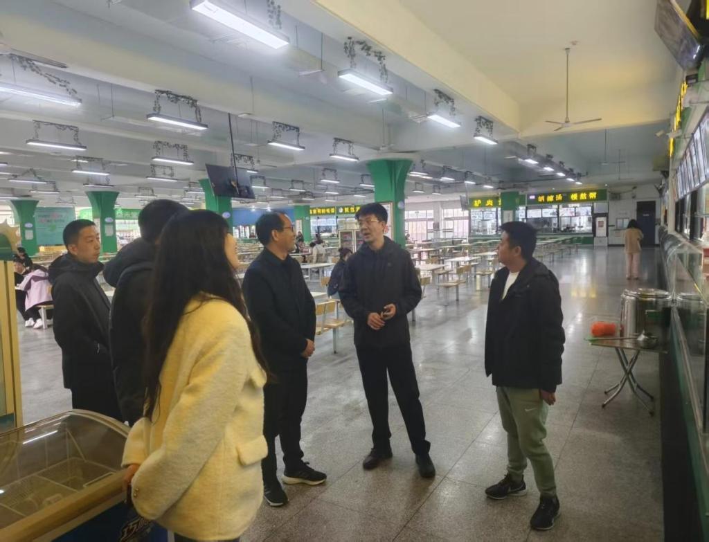 11月24日上午,焦作市山阳区市场监管局副局长马凡、郭璐静科长一行莅临我校,检查指导校园食品卫生安全工作。马凡一行对我校南校区餐厅的主副食仓库、洗消间、更衣区、后厨操作间以及食品安全管理等方面展开了深入检查,要求食堂建设需依据市场监管标准进行科学设计、合理布局,在保障供餐效率的同时,严格落实食品卫生安全规范,以满足师生的正常用餐需求。